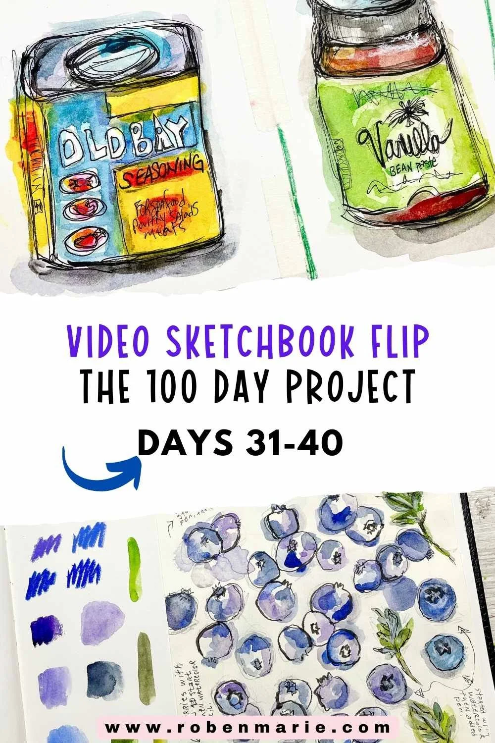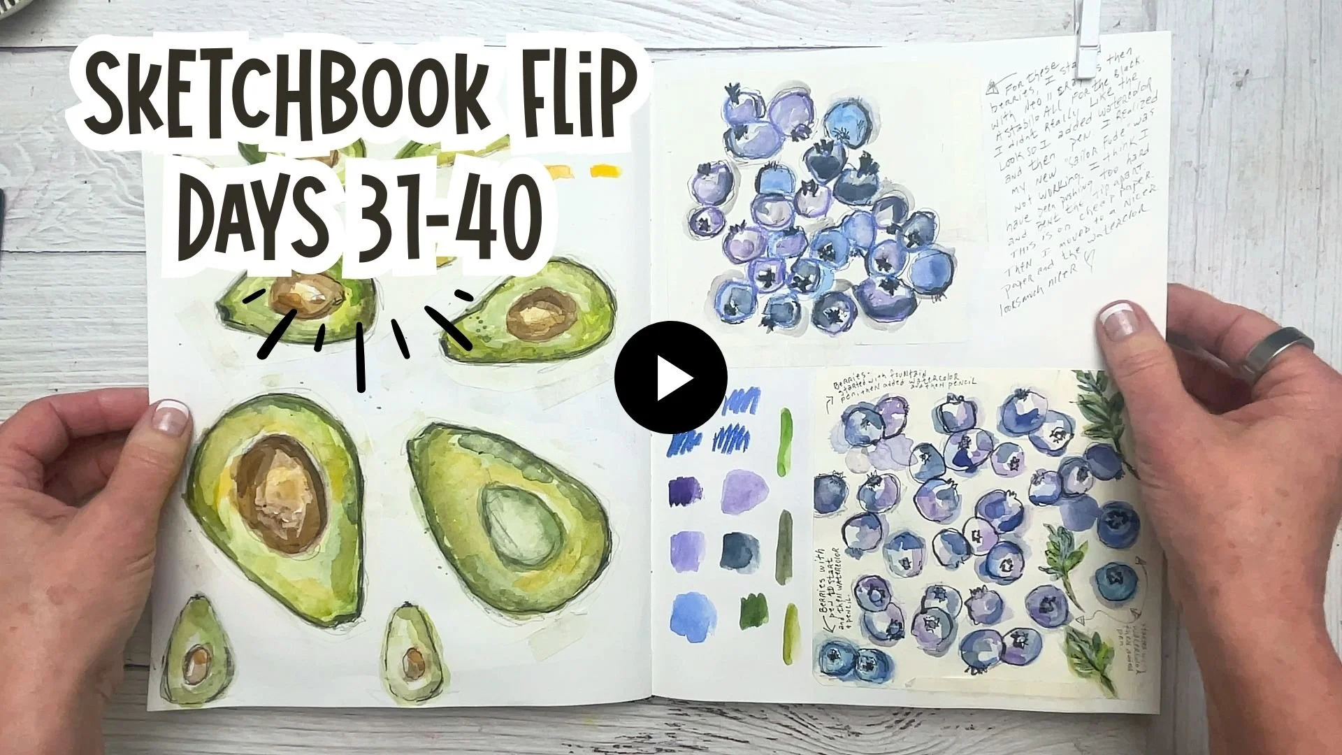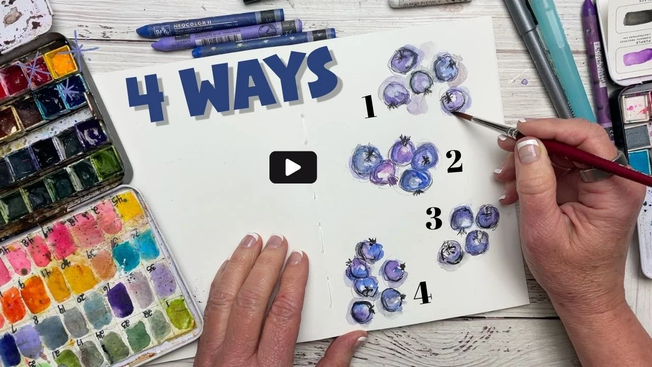 If you’d like to see how I approached these blueberries, I’ve shared a short video on Youtube where I create a new page and explore four different ways to sketch and paint them using watercolor and pen.